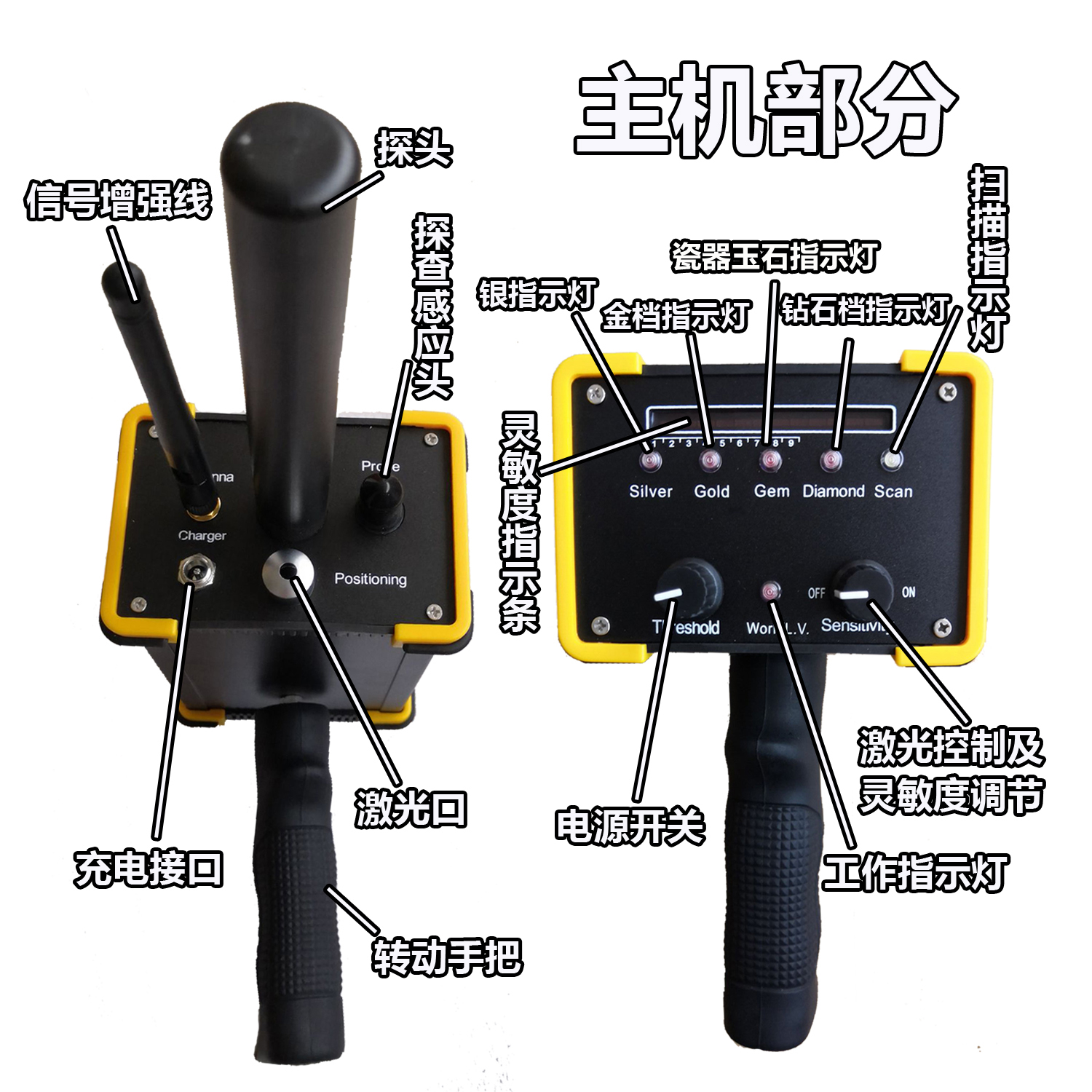 天线(铜质)可在设备的顶部根据自由运动的天线系统发现金块和金、银、玉石、钻石和墓穴在地下30米的深度,在直径1000米圆周内。