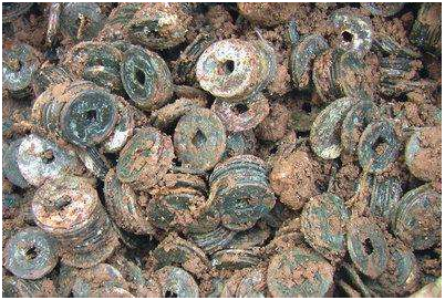 今年八月十八日,山西省忻州市静乐县刘先生用金属探测器在一处下水道施工工地上意外发现大量铜钱.据说大概有一千多枚不同年代的铜钱. 六十多岁的齐先生年轻时就下岗了,一直靠儿子养着,为了帮儿子减轻负担前几年开始捡垃圾补贴家用.后面发现有种金属探测器可以快速准确的把地下的废铁找出来,几个月前儿子花了八百八元钱在网上给购买了台金属探测器以后经常会去一些在施工的工地上找废弃的烂铁卖,八月十八日上午刘先生跟平时一样拿着探测器来到施工工地,看见工人们正在开挖土机挖土,他就拿着探测器往土层来回扫描,不一会探测器发出很大的响声,弯身一看发现大量铜币.当地文物部门很快就知道并派人员来清理现场,其中有少里的银元、元宝等文物 真假有待部门鉴定.