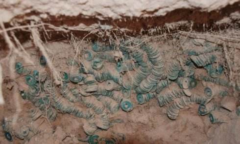 据报道,内蒙古考古研究所接到了电话说在:内蒙古鄂尔多斯市杭锦旗霍洛柴登古城内有人利用金属探测器探宝发现了古钱。研究所到达现场后清理发掘出7000多斤的古钱。按每斤大约200枚计算,初步估算有140万枚。让人惊喜的是他们又发现了铸币窑址4座。窑室平面主要为长方形,窑室一侧有火膛、火道、窑门、排水沟等。4座窑址分布井然有序,窑址附近还发现制晒坯场地。考古人员同时发现了陶器、铜器、铁器、石器及大量铜铁炼渣、动物骨骼等。