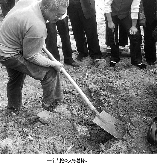 在商河县城田园路与明辉路交口的西南侧陈某拿着探宝仪来到一处好久没有人居住的老宅子寻宝,过了半小时左右仪器有情况,陈某就拿起铁铲挖土,突然发现黄黑的泥土出现了几块白色的东西,拿起一看,原来是几十块银圆。陈某立马就一声大叫引来了周围路过的人立即围了上来眼尖的人一看,立刻冲了上去捡起银元。陈某是最先看见了银元,抢得最多,估计有上百块,抢了银元就离开了现场。