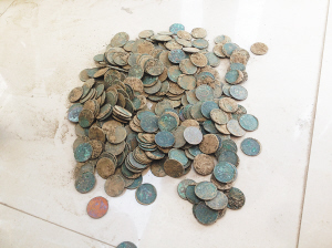 据了解,挖出古钱的地方是廖家的老宅,从事药材生意的廖敬承富裕在1939年日本侵略崖州,一起往深山里逃难这些古钱可能是家里的长辈逃难前慌忙埋下的。由于家里长辈未有交待,他们也不知道钱币埋藏地址。发现古钱当天大约有20多户村民来拾捡,一直到昨天拾币的村民才逐渐减少。因上百村民在挖出了古钱币有人过来收购直接论斤卖钱,甚至有的村民,将古钱币按每斤190元人民币的价格卖掉。