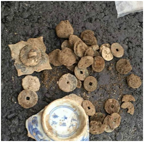 没过几天步先生和几们老友按计划拿着探宝器去寻宝,没过多久他们找到一个个窑洞,一个一个的去探测的,时不时的探宝器会发出呼声,一个老友的就会弯下腰去挖土,有时是铁块有时是铜钱,就这样几个人合作,一个下午过去了收获还不少呢。直到天快黑了他们才收拾东西准备回家清理今天的收获.