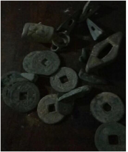 小顾趁大家不注意的时候,拿着铁铲出头自己挖了一个大概七八十公分的坑,但是什么也没挖到,看着天色晚了,想第二天再接着挖。可能是现在的人运动的少,第二天小顾去发现,要很疼,根本就挖不动了。小顾想起以前见朋友用过探宝仪器,不如拿过来试试,看看地下究竟有什么。小顾把朋友的金银探测器——美国T2拿过来,到了此处一测试就发现仪器提示下面有铜器。这下小顾就有劲头了,直接让挖掘机过来,大概挖了大概1米的样子,就发现了几个装着铜钱的团子。后来听爸爸说,这是自己家祖辈们挖的宝库,没想到这么轻易就被小顾给发现了。