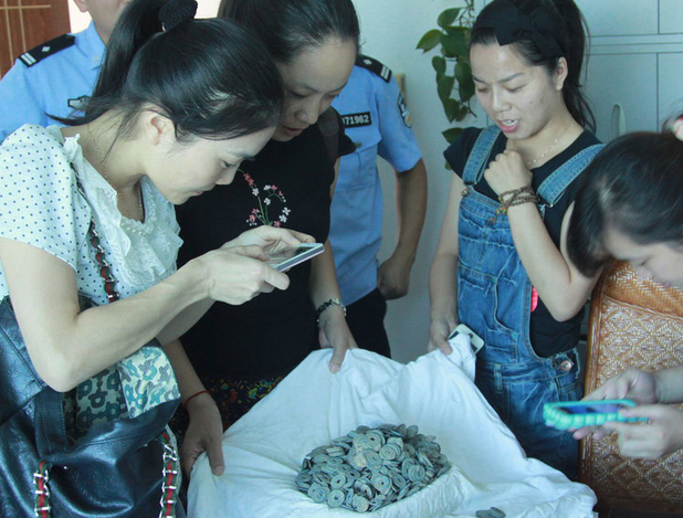 村民寻宝挖出古钱上缴国家