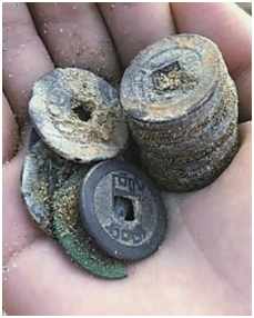 河北李某使用探测仪器找出大量的铜钱