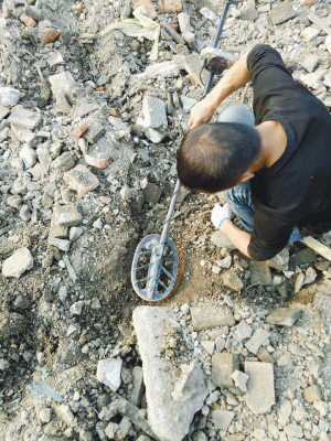 据报道,在浙江绍兴越城区东湖街道松陵村进行拆迁的时候引来的“淘宝热潮”,他们有的甚至拿着金属探测仪在废墟上探寻。不少人手里拿着‘金属探测仪’,现场仪器发出的‘嘟嘟’声此起彼伏,发现异样后,他们就用小锄头或小铲子小心翼翼地刨开泥土,果真,不少“淘宝客”从泥土里挖到了大量生锈的古钱币。