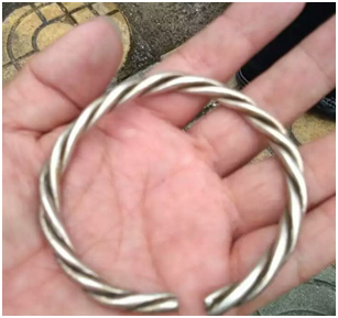 据刘女士介绍前不久在菜园子锄草时不小心把外祖母传给他的银手镯弄丢了,想了很多办法都没有找到,后来经人介绍我购买了一台地下金属探测器才找到的.