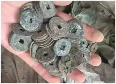 江西省九江市星子县华林镇李某使用美洲豹-II在家中老宅附近的大石下面找出大量的铜钱