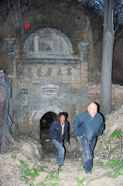 昨日下午,记者驱车赶到老刘家中。在老刘的带领下,记者看到该处地洞入口确实在他家后院当中。据老刘介绍说,在2007年左右,他将家搬迁到这个地方在挖地下室时发现这个地洞。走过老刘家的台阶,向下走8米左右就看到有一个坑洞,但光线较暗洞口狭窄,不容易下去。在赵长寨的带领下,记者找到了入口,该入口已经被他用预制板盖上。打开预制板,看到地洞距离地面30余米高,站在洞口能清楚听到有水流的声音。走进地洞发现里面有大量的墓碑。墓碑上可有很多文字。老刘表示自己并不认识上面的文字。