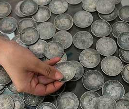 海南省海口市秀英区东山镇陈某使美国T2 LTD地下金银探测仪器在野外找出大量的银元