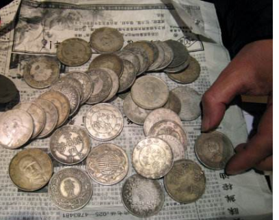 河南省濮阳市南乐县梁村乡东部村的陈某使用美国G2地下金银探测仪器在百年老宅找出两大罐银元