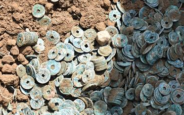 据报道8月3甘肃省陇南市西和县何坝镇何坝村吴某使用新款赏金猎人白金版地下金银探测仪器找出大量的铜钱。