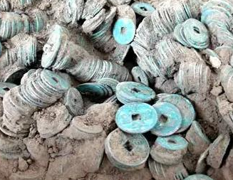 贵州陈某在田地找出大量的铜钱