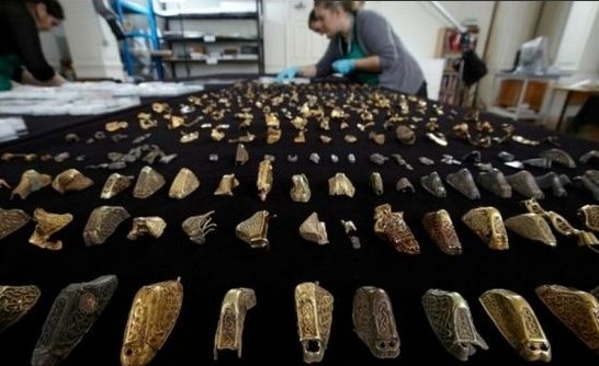 在伯明翰博物馆及美术馆,专家们首次将这些由黄金、白银以及石榴石制成的饰品的碎片和部件——其中很多反映出古代工匠高超的技能——放在里屋的一张桌子上,而后将它们组装在一起。组装后,他们发现了部件之间600多个此前未发现的接合处。
