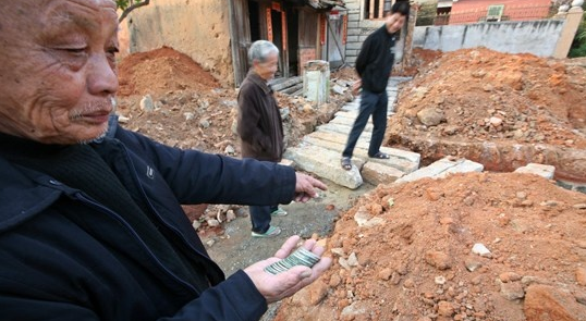 村民刘某利用地下银元探测仪挖出爷爷埋藏的银元