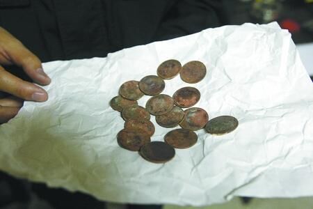 最近曹某在自己家的后院里用探宝器把祖传埋藏的宝物找出,听说挖出了古币闹的附近邻居都上门拜访瞧瞧挖出的宝物。