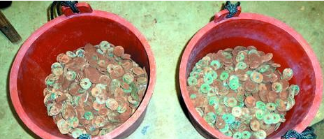 3月7日海口村民自家地里探测突然翻出来几块石子状的“东西”,可仔细一看,“哎呦!这竟然是古钱币。”3月15日,家住海口琼山区大坡镇的老陈和老伴在地里挖出满满一大陶罐古钱币,一共130多斤。后经考古专家初步鉴定,这些古钱币的年份可以追溯到宋代。由于存世量较大等原因,钱币的价值不高,但有一定的历史文化研究价值。