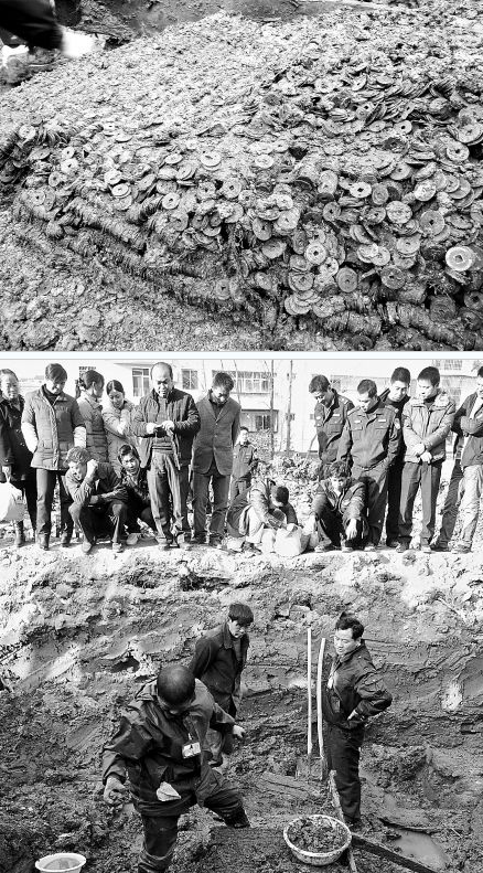 旧城改造寻宝人用探宝仪器发现大量清代古币