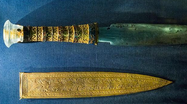 时间6月22日消息,内蒙古赤峰派出所接到牧民玛卡报警说在草原挖出一把古匕首,匕首有纯金打造。