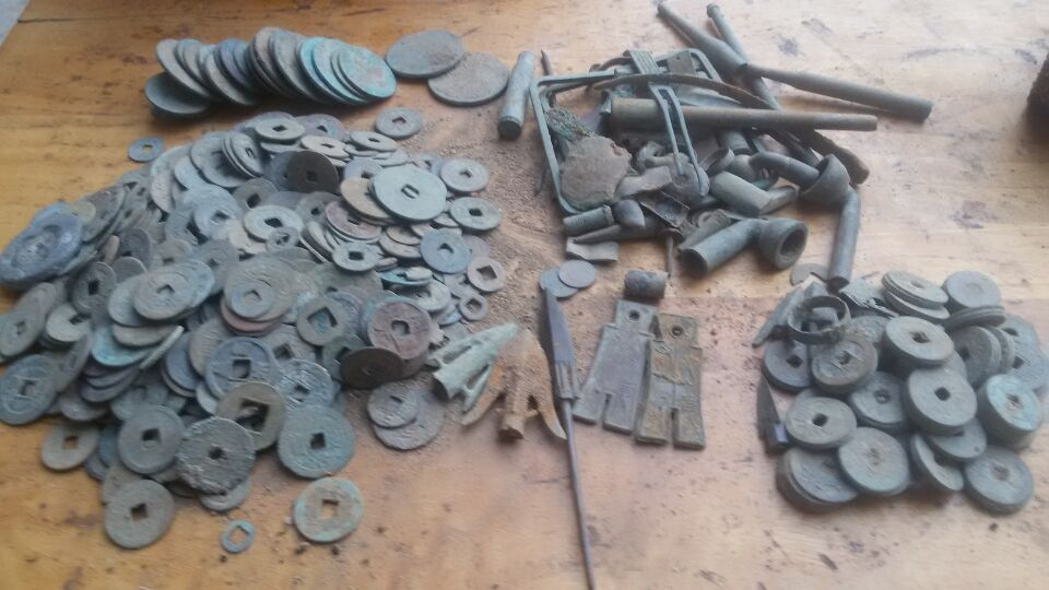 河北承德张某使用黄金探测仪器发现大量的古钱