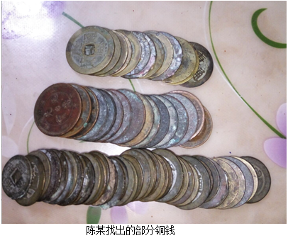 山东菏泽陈某使用探测仪器找出大量铜钱