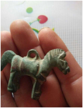 上个月18日上午陈大叔和平时一样知道哪里有工地就会拿着探测器去捡废弃的烂铁和铜丝之类的,这次这个工地很大击如果想要捡完整个工地的话需要花上一天半天的时间也卖不了多少钱的,中午的时候陈大叔捡到了一大筐烂铁和铜丝,在整理好收获成果时准备回家之前再用探测器在地下扫了扫一下,探测器果然报警了,大叔用小铁铲铲了铲表面的泥土后什么东西都没有,拿起探测器再往铲过的地方扫了扫还是报警就继续挖了一会,因为大叔就是来捡废铜烂铁的,这时还没看有这些东西所以打算放弃再挖了,这时去却露出个小东西来,捡起来一看是个铜做的小东西,大叔顺手把东西装口袋回家.