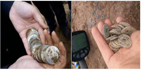 张大询问爸爸得知大概的位置后盘算一会就拿着自己使用的金属探测器飞到目标地准备搜索起来了,搞了几个小时总算是找到了东西还真不少.