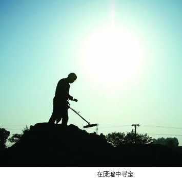 据老姬自述他每天5点左右就要起床,去晚了,工地就要关门,进不去了。昨日早上6点,路上的行人并不多,老姬骑着小摩托,沿航海路向东驶去。在南三环的一处拆迁工地上,老姬停了下来,“前几天踩好的点,看能不能挖到什么。”他取出金属探测仪,娴熟地组装、调试,然后拿起铁镐,奔向工地。
