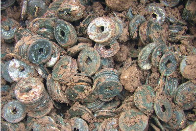 据报道,12日中午,淮安市清河区越河小区水韵天成建设工地,一位拾荒老汉在拆迁的废墟上拿着探宝仪寻宝无意发现一个埋藏大量古钱币的小坑,消息传开后引发市民哄抢。