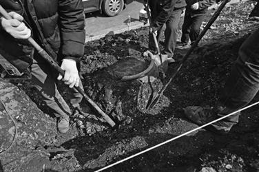 张先生一听这不行啊,这要是文物给损坏了怎么办,走出十几米后他报了警。警方随即赶到现场驱散了捡铜钱的人群,在周围设立起警戒线,并与本溪文物管理部门取得了联系。15日7时30分,本溪市考古人员开始对古铜钱进行发掘。