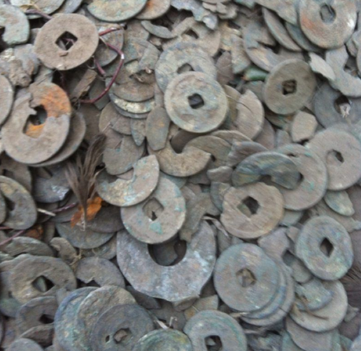 24日上午,在济南市纬一路某工地内,一名拾荒小伙正拿着一个觅宝者808地下金属探测器,早上不到6点钟他就来到这个工地了,想用手里的家伙去搜寻点儿铁件;在搜寻过程中听到金属探测器的警示声音后,他赶紧过去扒拉开泥土一看,是两个烂坛子,他心里一喜:“这下发大了”,以为是两坛子铜钱之类的值钱东西,可往里一翻才发现下面竟然有一大堆烂了的铜钱!之前听说这边以前是个老地主居住的地方,听说也有一笔财产没找到,本以为是一些银元之类的,没想到现如今找到的居然是一堆烂铜钱........
