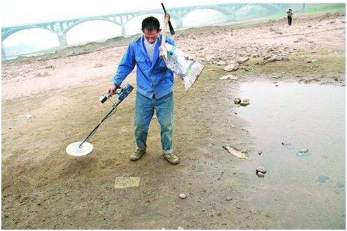 这个男孩告诉记者,这些淘宝者,大部分是吴城本地人,金属探测器是从网上购买的,花了400多元,镇里很多居民都买了。挖出来的宝贝,大多是铜钱,也有一些幸运者挖出了银元、玉器等贵重物品。“前天就有人挖出了一块银元,卖了800多元!”男孩说着,眼里闪露出羡慕的神情。