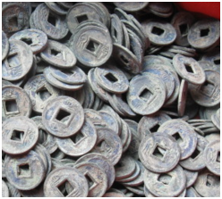 广西张某在野外找出大量的铜钱