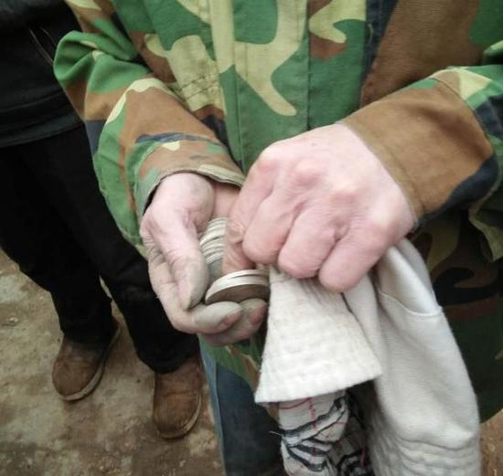 图为村民挖到了银元