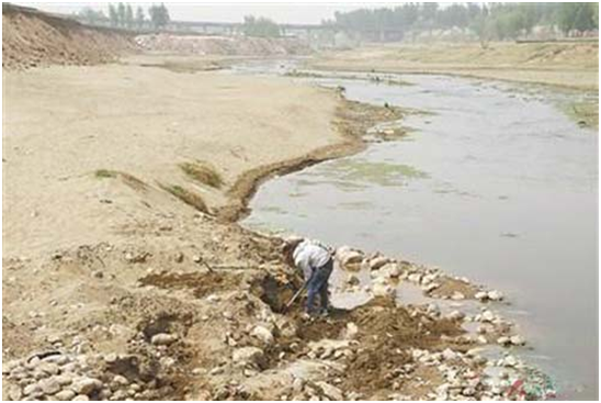2013年下半年以来,江西各大湖泊河流遭遇历史罕见枯水期,鄱阳湖和赣江、修河大面积干涸露底,吴城老码头也裸露出百年不见的河床。从去年十一二月份开始,就每天都有大量“淘宝者”蜂拥而至,最多的时候每天都有上百人在挖宝。这些探宝者看起来相当专业,他们每个人手上都带着探宝仪器。听他们说这些仪器是专门为探宝而设计的。