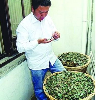 据报道,最近在苏州干将路改造乐桥段的一个施工工地上外来人员张某带着金属探测器来到这里寻宝,只见不见张某手里的金属探测器就发出了响声。扒开土层一看原来是一口井,拿手电一照不深就两三米,但是里面有很重的锈味,下去一看全是古钱币。张某随即就让工头通知了苏州市考古研究所。经过挖掘出来的古钱币有差不多4吨重,初步判断这些钱币是北宋中后期所铸,这在国内已经罕有。目前研究所已经向有关部门申请给予发现者张某奖励。