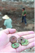 广西桂林永福县苏桥镇吕大哥一个月前在自家的菜园子里翻土时不小心给翻出几个碎铜片来。这时吕大哥没有在继续翻动泥土不一会翻出个...[全文]